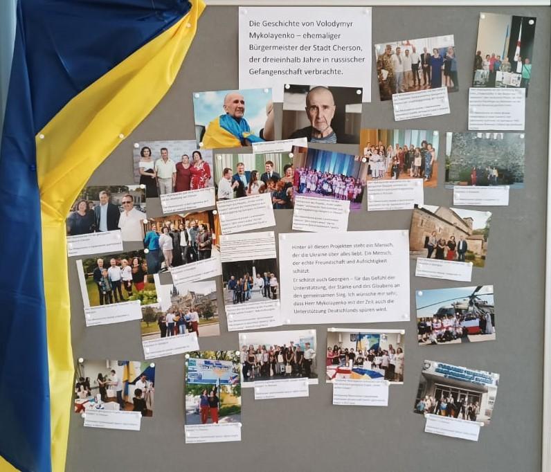 Окрему увагу організатори приділили історії екс-мера Херсона Володимира Миколаєнка, який провів 3,5 роки у російському полоні й лише цьогоріч, у День Незалежності України, повернувся додому. Зі світлин, представлених на стенді «Символ незламності України», гості заходу дізналися про його людяність, щирість і незламну любов до України, яку не зламали навіть російські катівні. Пан Володимир багато років підтримував проєкт «Діти хочуть миру», реалізований Чорноморським жіночим клубом, а також інші ініціативи, що зміцнюють «народну дипломатію» між країнами та суспільствами, які обирають свободу, європейське майбутнє та демократичний розвиток.