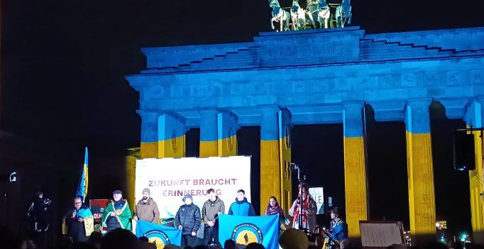 Разом з українськими громадами, з німецькими та з румунськими друзями представниці Чорноморського жіночого клубу вийшли, щоб засвідчити солідарність з Україною, вшанувати пам’ять про вбитих росією українців та всіх ти, хто поруч з нами бореться за вільну Європу, і висловити підтримку Збройним силам України.
