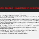 Розглядали правову основу та цілі денацифікації, її методи, недоліки й підсумки. Особлива увага приділялася тому, як поєднання судових механізмів, політичних реформ та виховних програм поступово змінило суспільну свідомість німців і стало основою відновлення демократії.